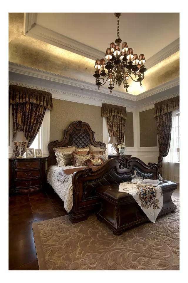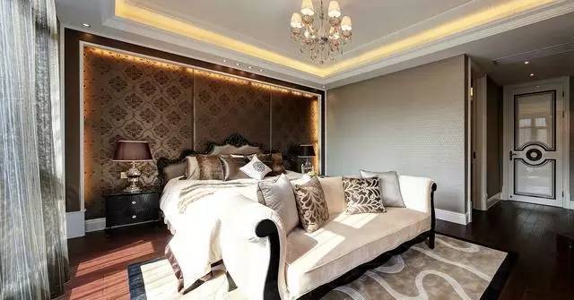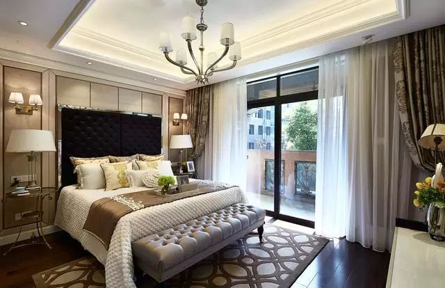 别墅的欧式主卧设计,落地大飘窗阳台一定要有,真的住进去会觉得特别美