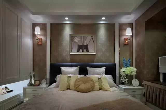 欧式风讲究浪漫,所以经常会采用一些灯光或墙面画的点缀来衬托居家氛围