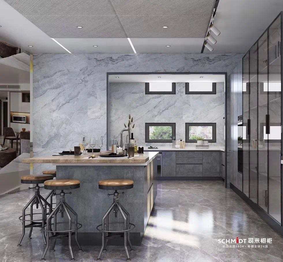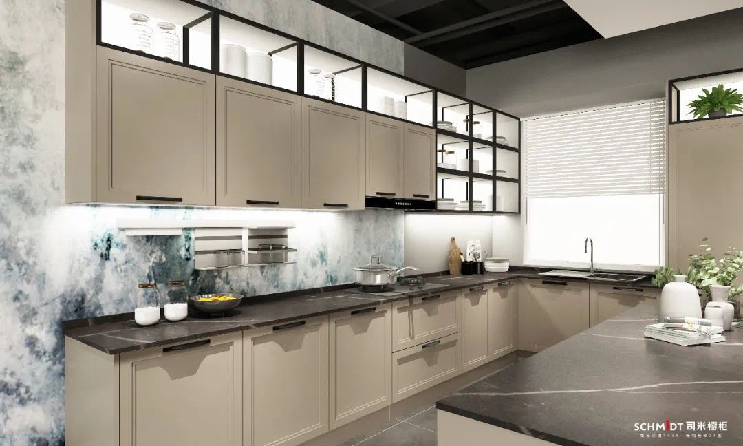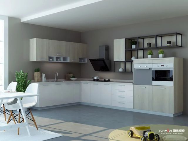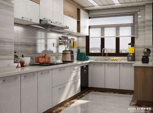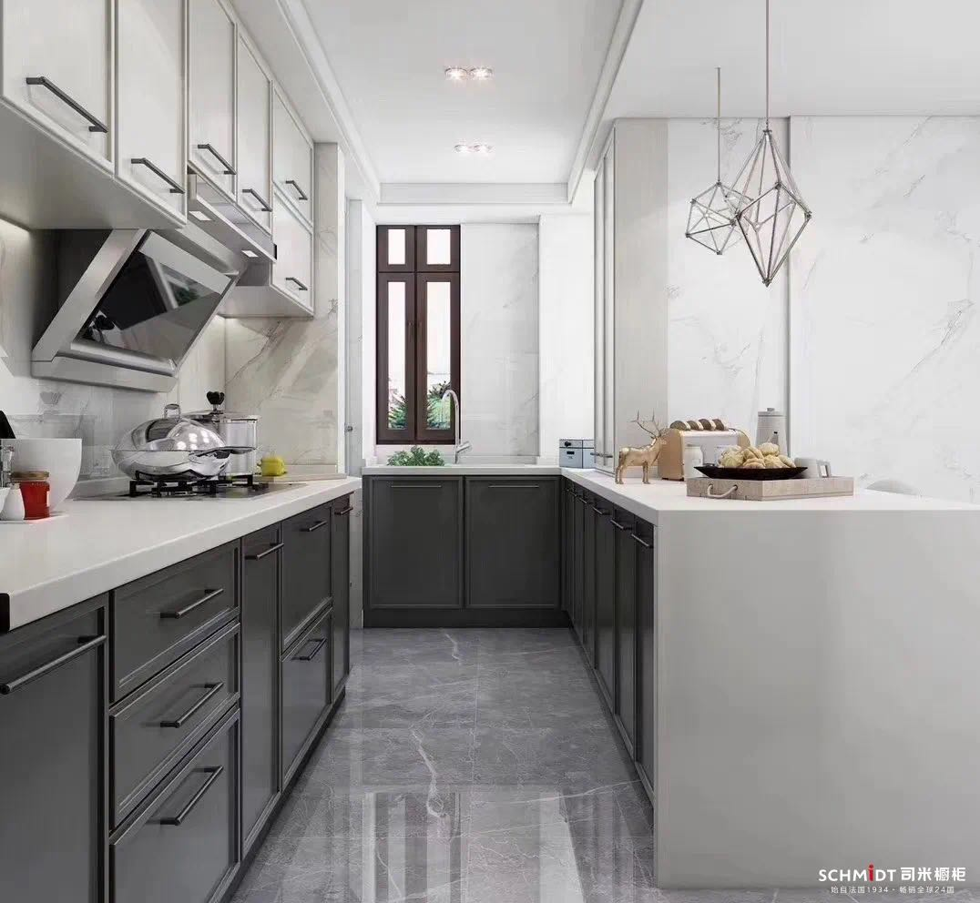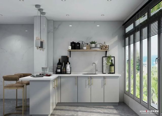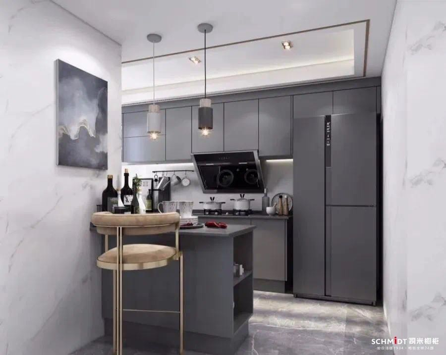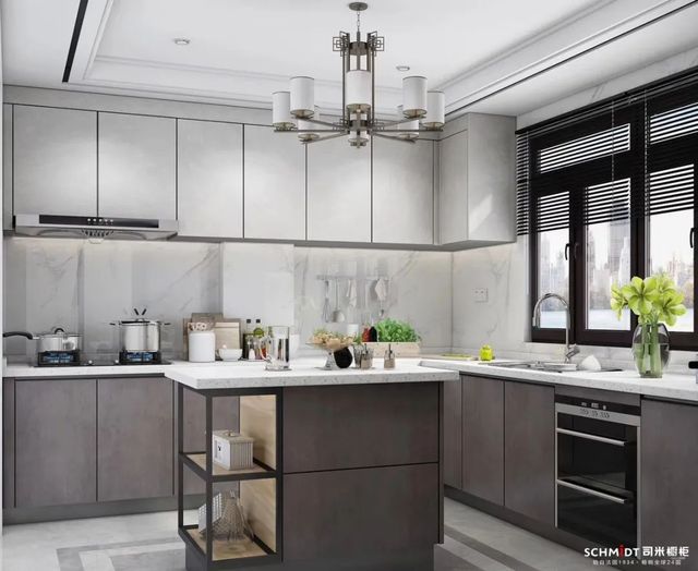 作为热门的中性颜色,在厨房里使用灰色,能让L型厨房显得更加舒适。